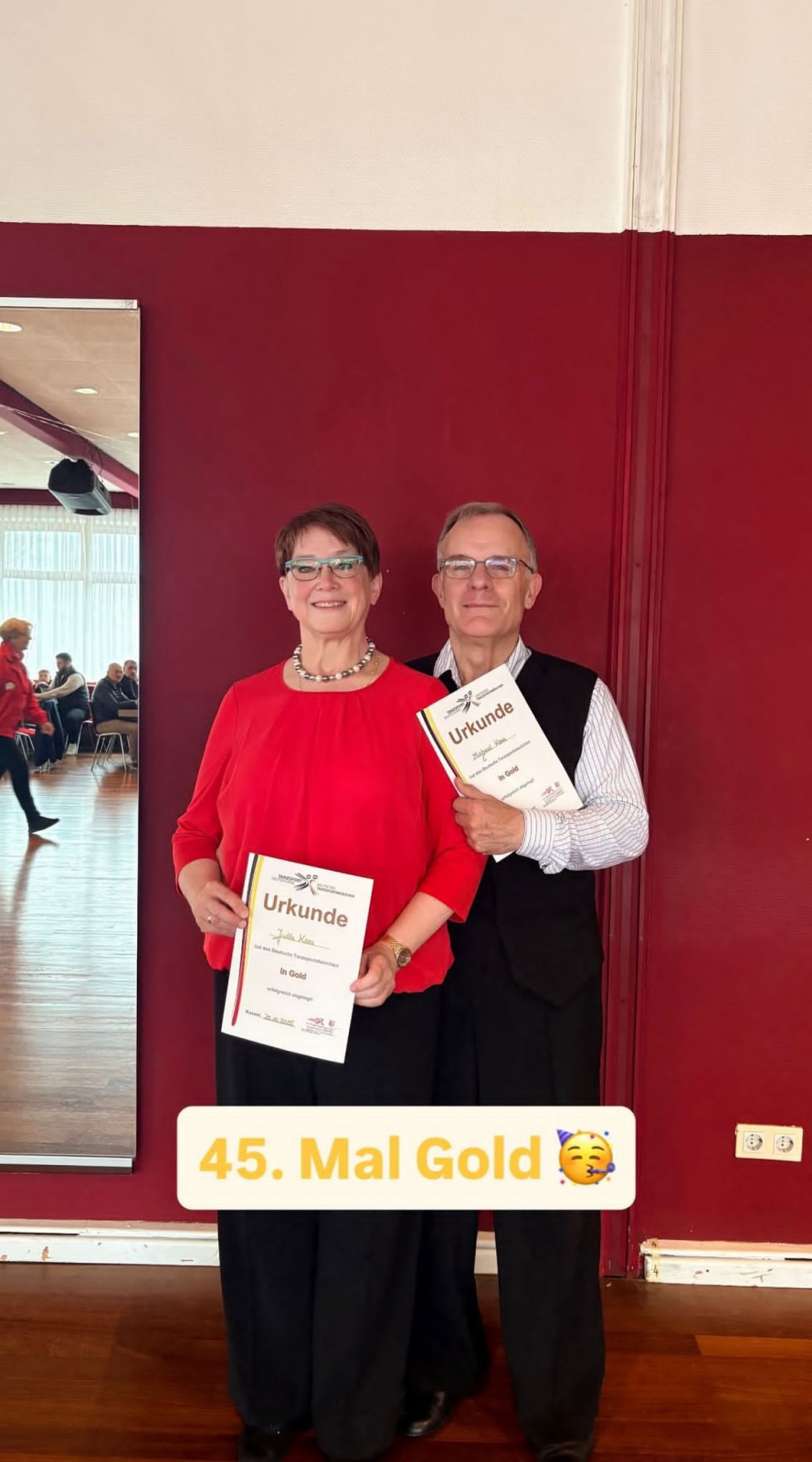 Am 25.Oktober 2025 hat das Paar Jutta und Michael Koss im Rahmen einer Veranstaltung des Rot-Weiss-Clubs Kassel zum 45. Mal das Tanzportabzeichen in Gold abgelegt (5 Tänze aus dem Standard- oder Lateinbereich mit einer Mindestzahl an Figuren und „überwiegend“ im Takt). Zu den Gratulanten gehörte auch der DTSA-Beauftragte im HTV mit dem Hinweis, dass das Paar das Erste ist, welches diese Zahl erreicht hat.
